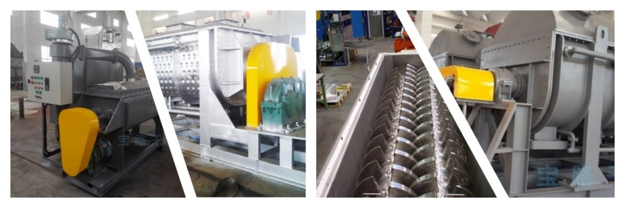 通入冷卻介質(zhì),如水、冷卻鹽水等即可用來冷卻物料。如:使用于純堿行業(yè)的槳葉式?jīng)鰤A機(jī),取代老式的空氣冷卻涼堿機(jī),節(jié)省了能源及尾氣處理設(shè)備,降低了操作費(fèi)用。